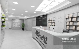 Дизайн зоны ресепшен компании Poetti, выполнен по бреднбуку на интерьеры и полностью отражает дух и ценности компании, несмотря на смену названия, организация также придерживается ценностям и традициям как и ранее.