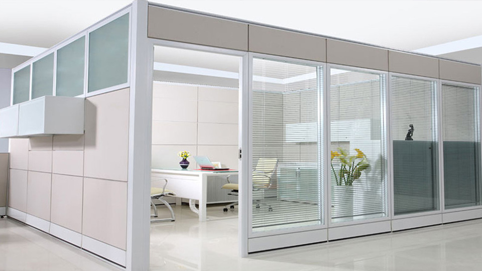 Каркас офисной конструкции изготовлен из окрашенного алюминия, его цвет можно выбрать. В качестве заполнения может применяться стекло, на которое можно нанести тонировку или декоративную пленку, или ЛДСП; также возможен комбинированный вариант. Офисные перегородки могут дополняться дверями, выполненными в едином стиле.
